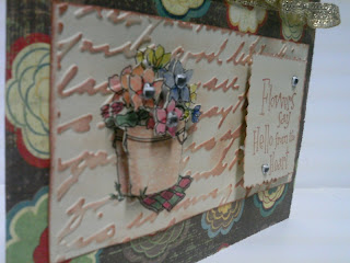 I embossed the background piece with Cuttlebug text folder. I thought that kind of fell in line with the sentiment stamp, which is from Hero Arts.