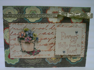 Hello Again! I hope you had a great Mother's Day weekend. I did, but it was also a very busy weekend! Today I have another digistamp from Designed 2 Delight called "Pail of Flowers". I printed the stamp at 2" and colored it 3 times to really create some layering. The third layer is only 3 of the flowers.