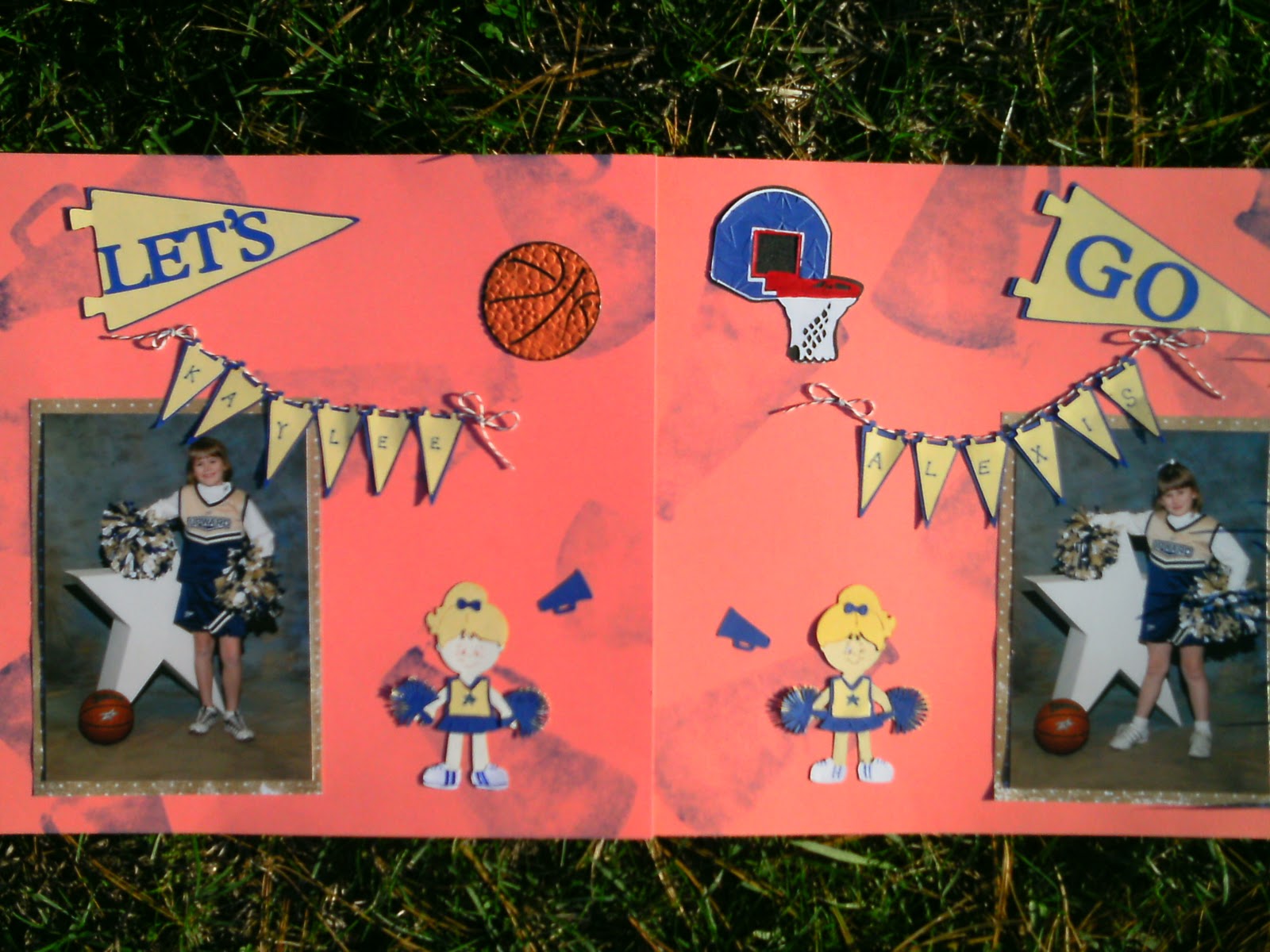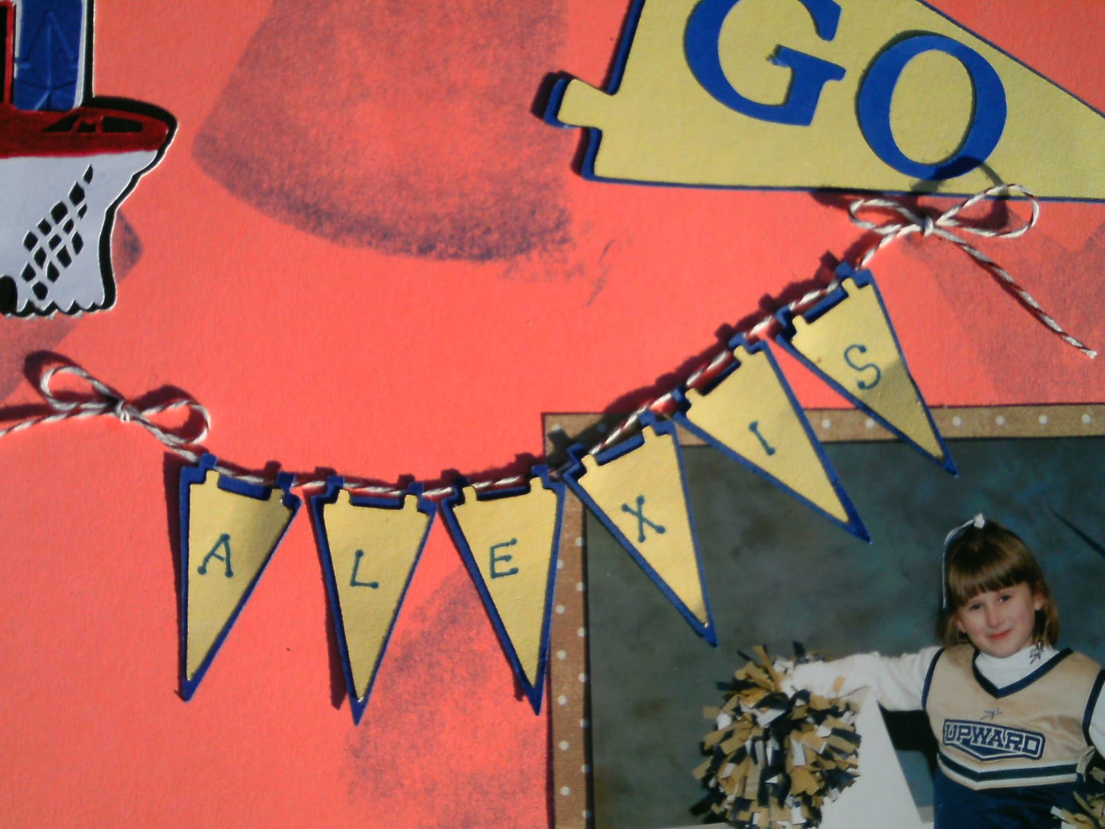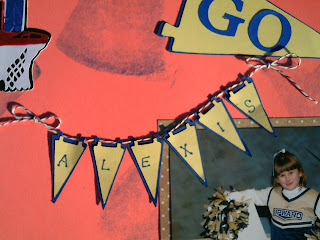 The banner flags, basketball and hoop all were cut from Sports Mania. The "Let's Go" is from Plantin Schoolbook.