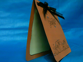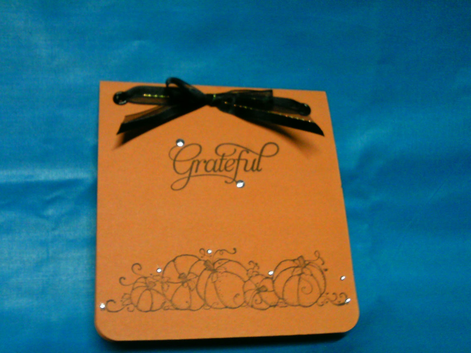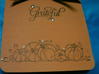 This shot shows off the little bit of bling better. I added the "Grateful" stamp from Studio G, two black eyelets and some black ribbon from Wal-Mart. The finishing touch was 2 pieces of bling with my I-Rock and the little rhinestones are from Spare Parts Embellishments.