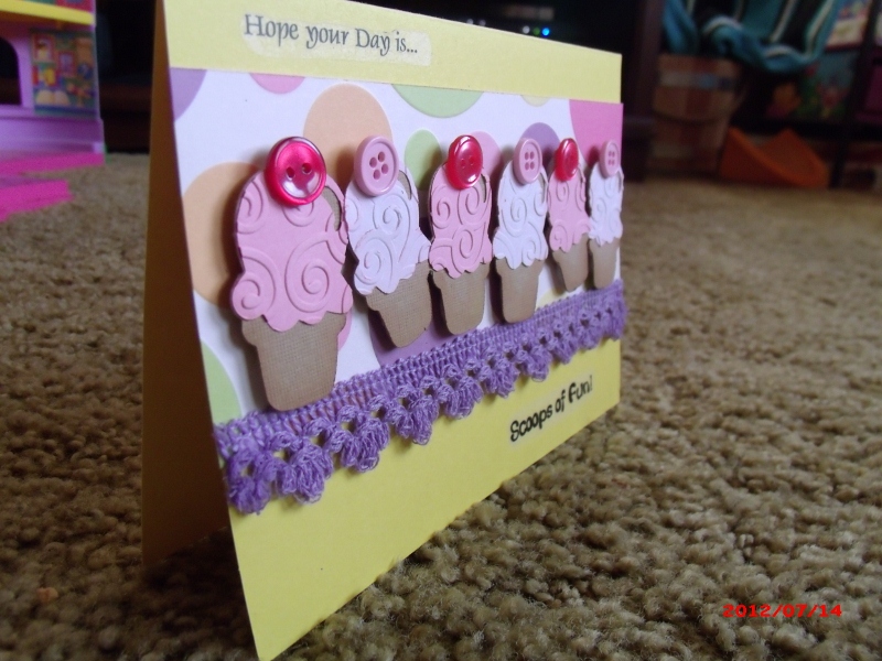 All the papers are from scraps and placed on a cream card base from Hobby Lobby. Even the oval frame was a scrap I found!