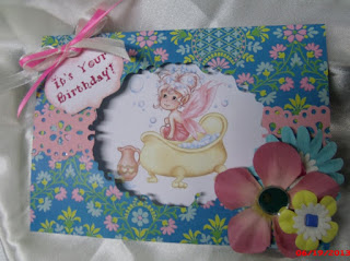 I had printed off this cute little pre-colored fairy digi stamp from The Paper Shelter to use on another blog challenge, but ran out of time to make the card. I was getting ready for my parent's estate auction and didn't have any spare time to craft, so missed a couple of my challenge commitments. Very thankful to have understanding teamies on all my design teams!!!
