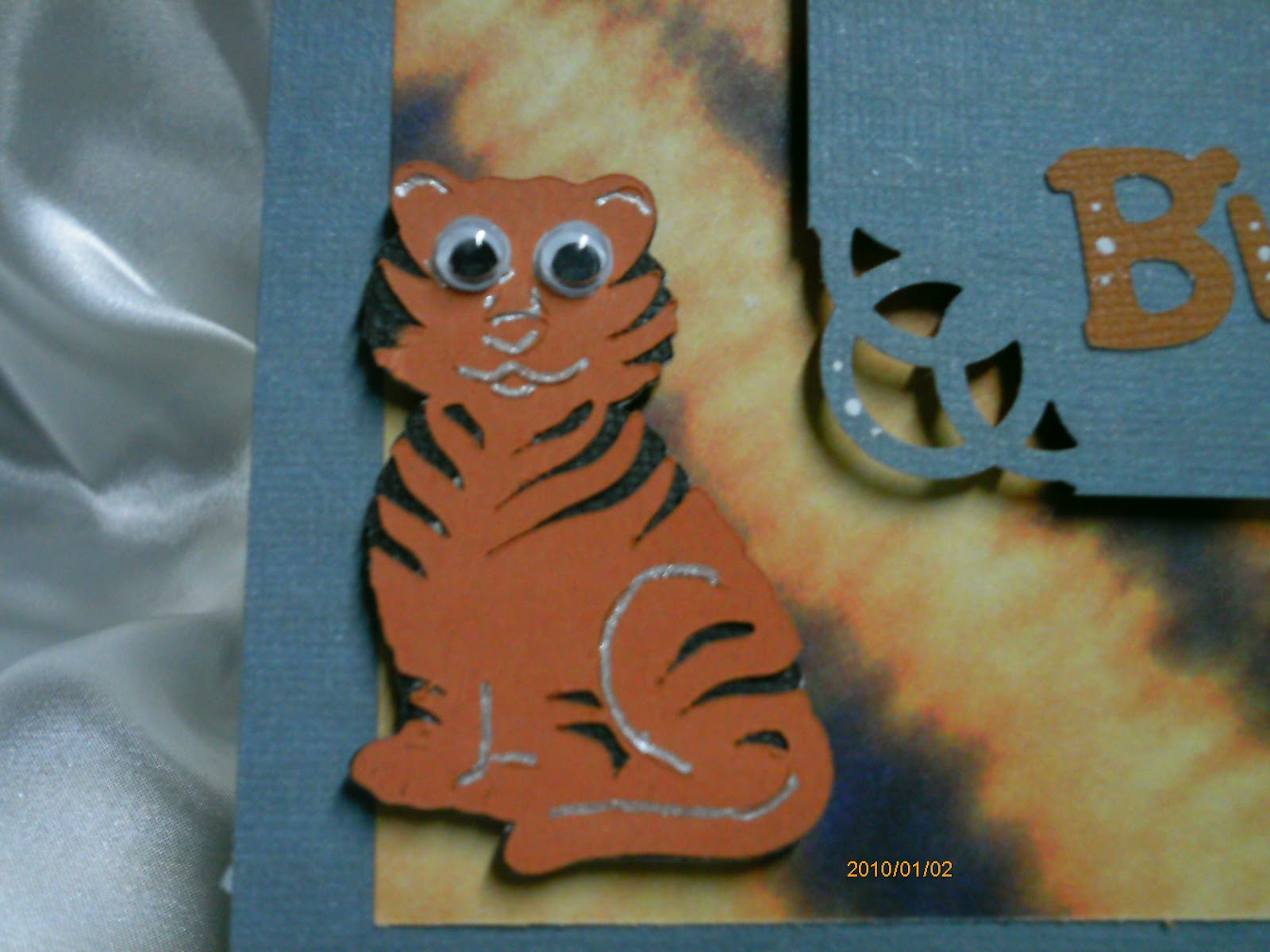 I used my Gypsy to weld two of the shadow cuts of the football on the Sportsmania cartridge. It's embossed with a Cuttlebug folder and all edges are distressed with Antique Linen distressing ink.I made the sentiment on my Gypsy using Pooh Font. I really liked the completed card and hope you do too. It was fun to make and I really like the embossing.